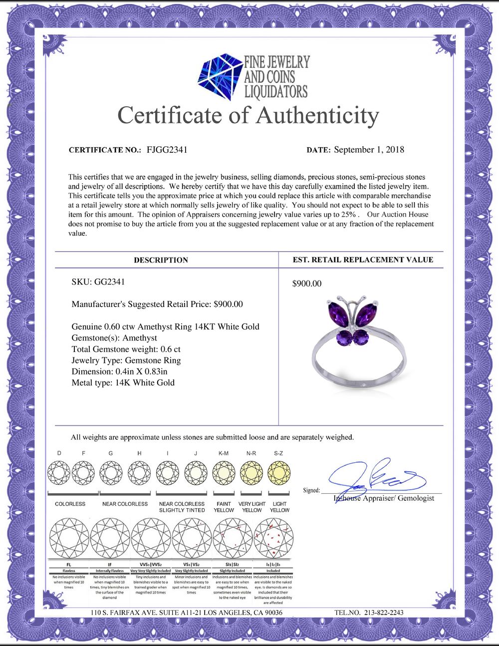 REF-28Y9F - SKU: GG2341 ---- Genuine 0.60 ctw Amethyst Ring 14KT White Gold