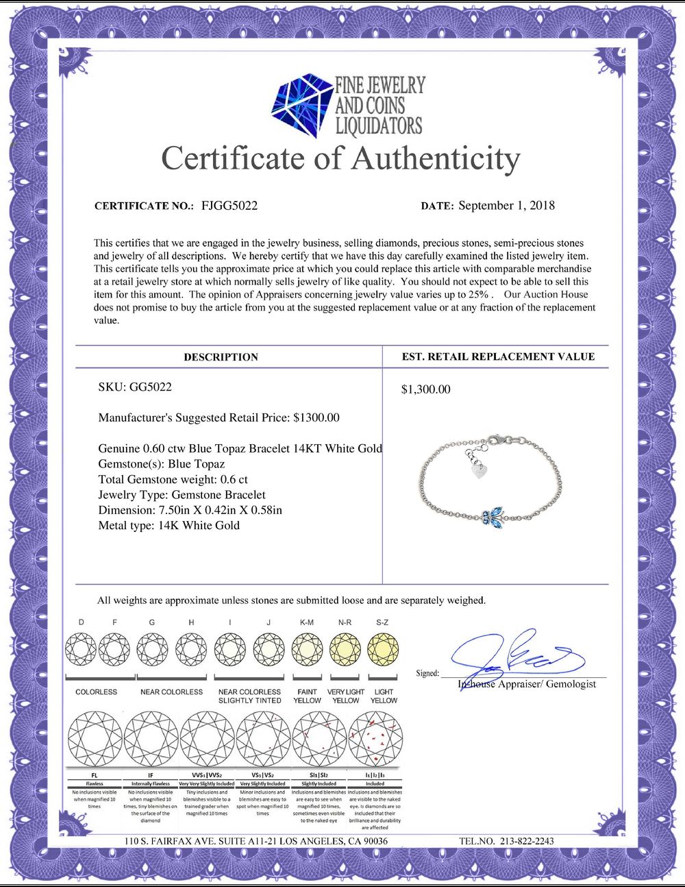 REF-41H6X - SKU: GG5022 ---- Genuine 0.60 ctw Blue Topaz Bracelet 14KT Rose Gold