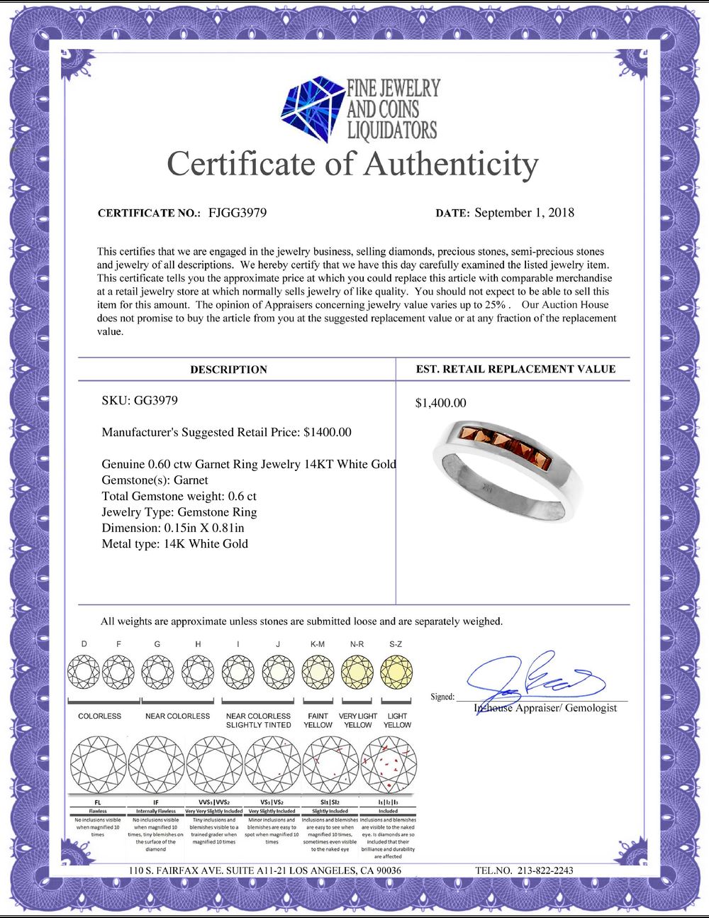 REF-46Z2N - SKU: GG3979 ---- Genuine 0.60 ctw Garnet Ring 14KT White Gold