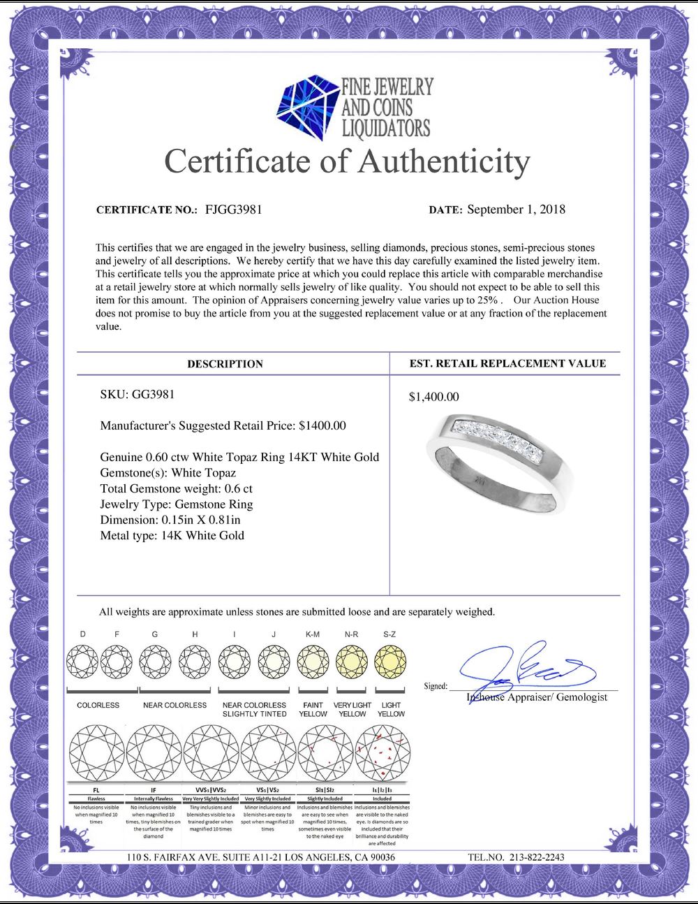 All Gia and EGL Diamonds are subject to availability due to consignors’ terms with us.