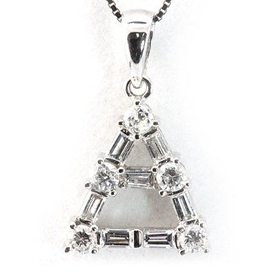 Genuine 0.61 ctw Diamond Triangle Necklace 18K **|**|** Main Stone: White Diamond ; Cut Style: Bag&Rd ; Total Carat Weight: 0.61; Jewelry Style: Triangle ; Metal Purity: 18K ; Metal: White Gold; Dimension: 16\" ; Total Weight(G): 1.83; Availability: 3-10 Business days, ready to ship, with certification of appraisal will take 2 weeks. ; MSRP: $2400