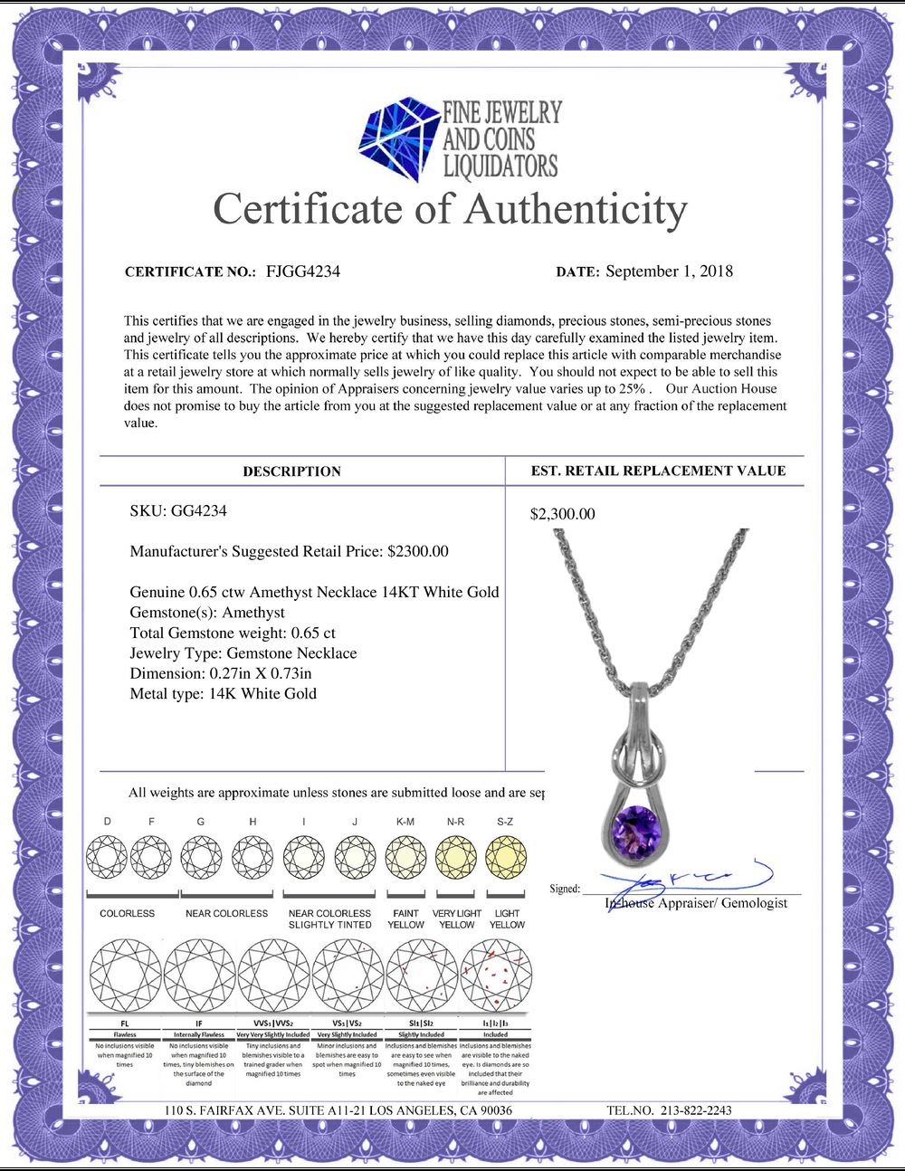 REF-73M7T - SKU: GG4234 ---- Genuine 0.65 ctw Amethyst Necklace 14KT White Gold