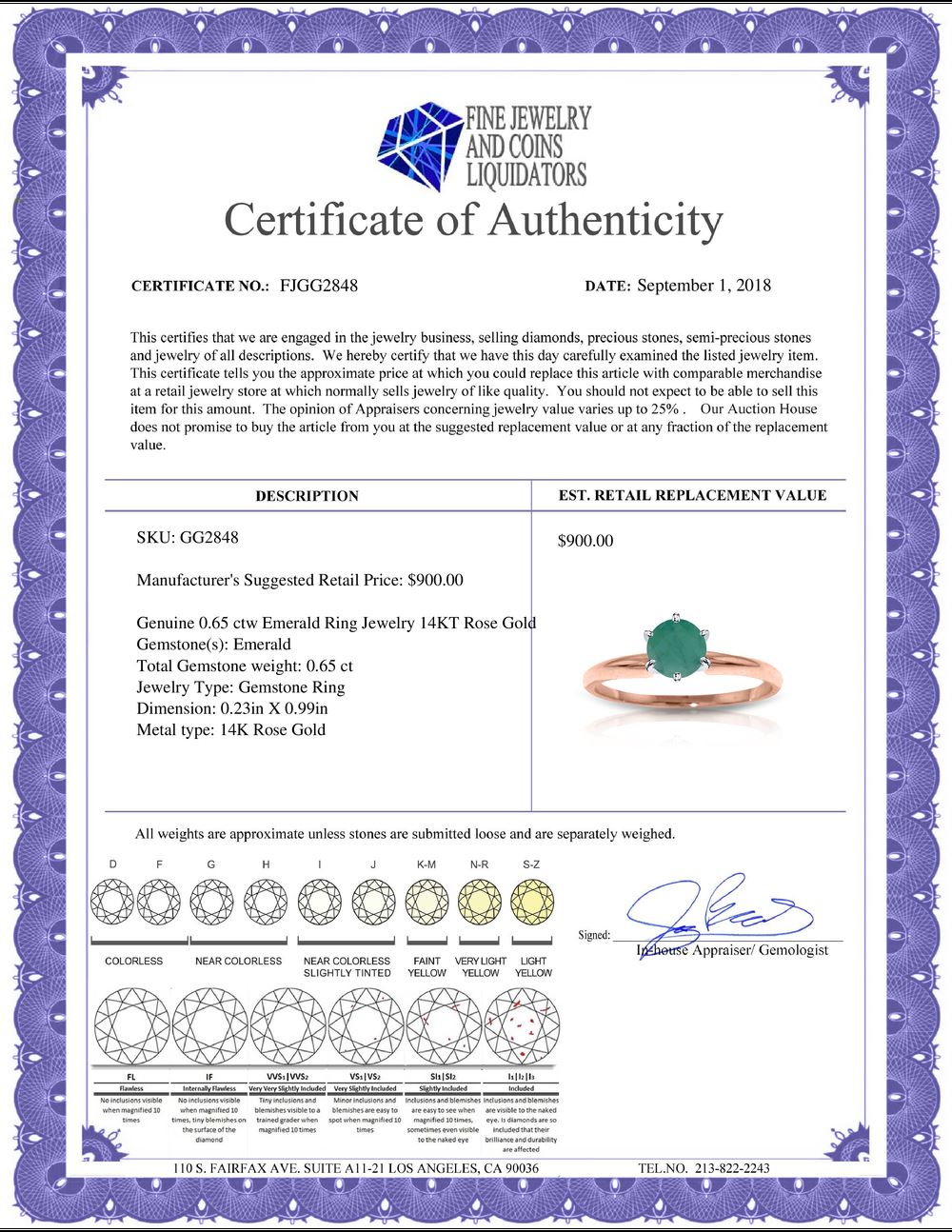 REF-28Y5F - SKU: GG2848 ---- Genuine 0.65 ctw Emerald Ring 14KT Rose Gold