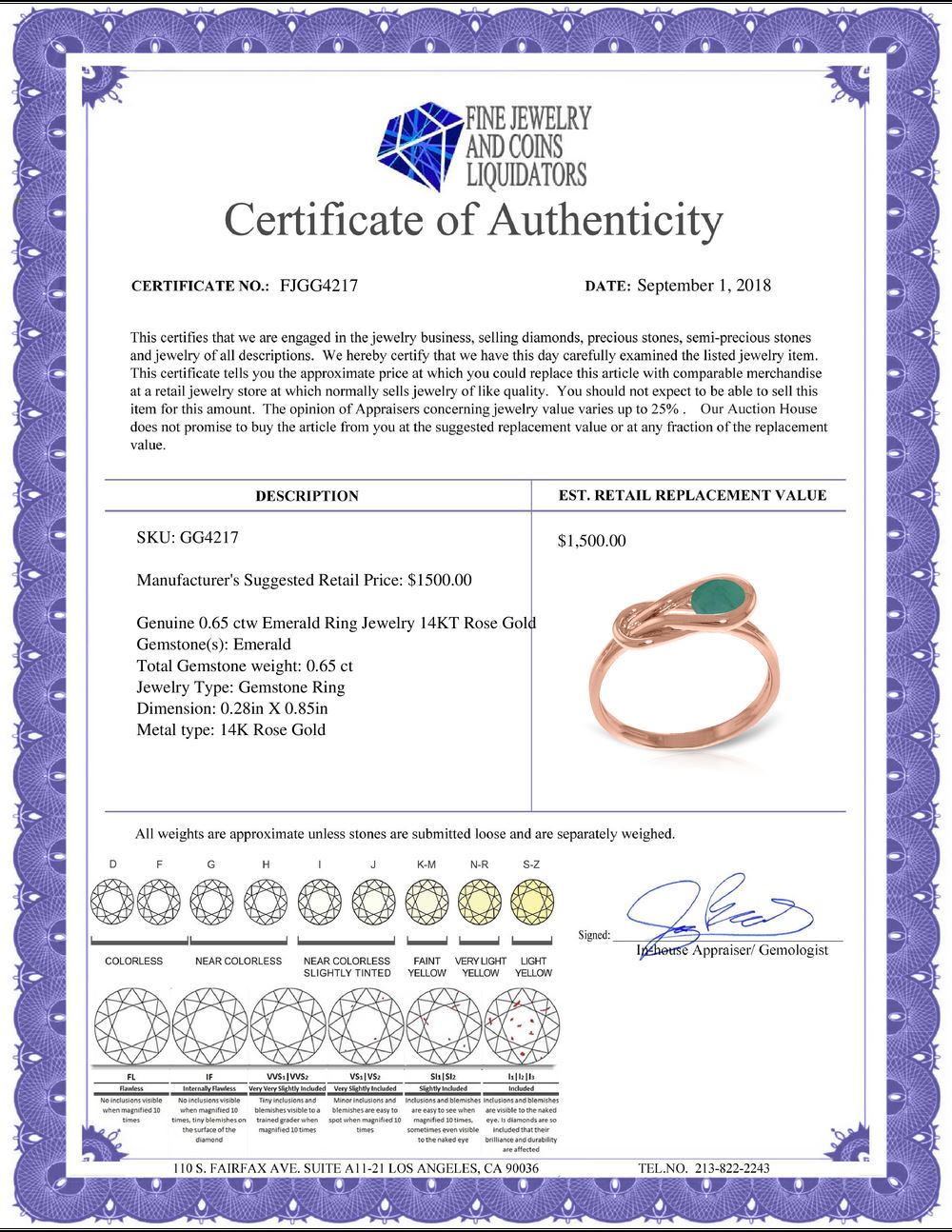 REF-49N6R - SKU: GG4217 ---- Genuine 0.65 ctw Emerald Ring 14KT Rose Gold