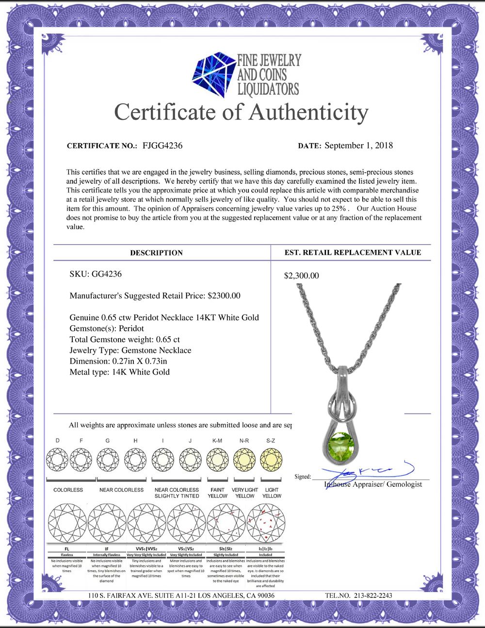 REF-73X7M - SKU: GG4236 ---- Genuine 0.65 ctw Peridot Necklace 14KT Rose Gold