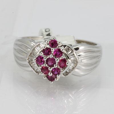 Gemstone: Ruby ; Gemstone Weight: 0.47 ; Diamond Weight: 0.18; Metal Purity: 18KT ; Metal: White Gold ; Ring Size: 6.5