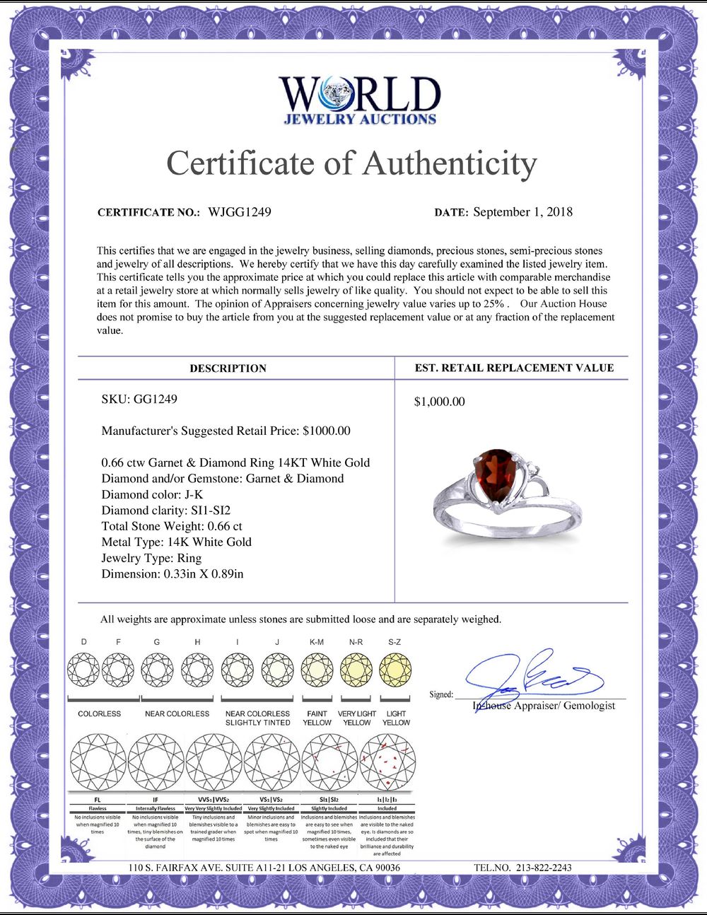 REF-31W4Y - SKU: GG1249 ---- Genuine 0.66 ctw Garnet & Diamond Ring 14KT White Gold