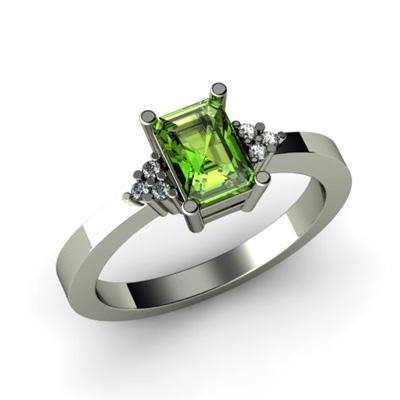 Mainstone: Peridot ; Metal Purity: 10kt ; Metal: White or Yellow Gold ; Weight(g): 4.04 ; Total CTW: 0.66 ; Diamond Count 1: 6 ROUNDCUT ; Diamond CTW: 0.06 ; Diamond Clarity: SI1-SI2 ; Diamond Color: G-H ; Gemstone Count: 1 EMERALD CUT ; Gem Weight 1/Carat: 0.6 ; Gemstone Color: ; Clarity / Rating: AA-AAA ; Gem Size: approx. 6x4mm ; MSRP: $1392