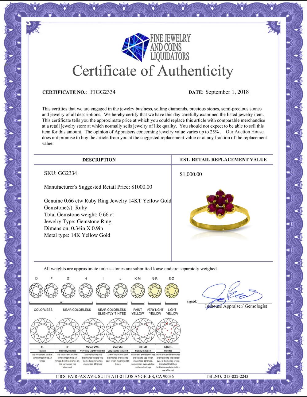 Genuine 14K Yellow Gold 0.66 ctw Ruby Ring