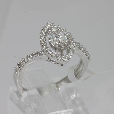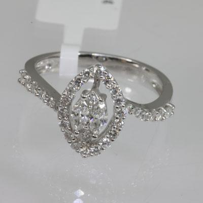 Main Stone: Diamond ; Type: Ring ; Diamond Count 1: 4PRMQ ; Diamond Weight 1: 0.24 ; Diamond Count 2: 30RD ; Diamond Weight 2: 0.43 ; Metal Purity: 18KT ; Metal: White Gold ; Diamond Clarity: SI1-SI2 ; Diamond Color: G-H ; Weight(g): 3.69g ; Ring Size: 6.5