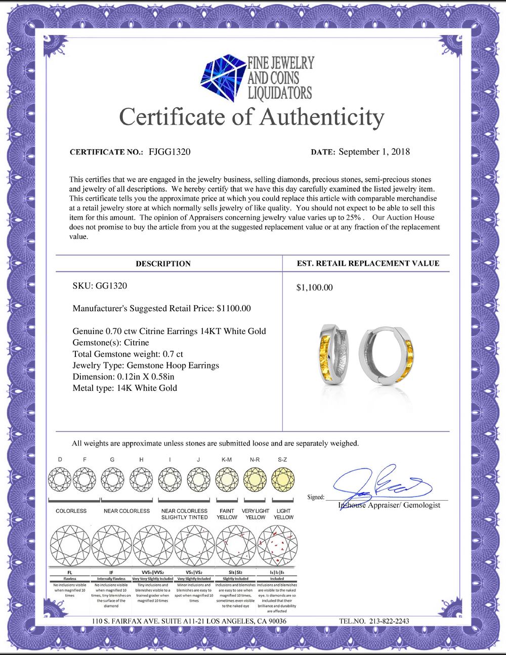 REF-36Y3F - SKU: GG1320 ---- Genuine 0.70 ctw Citrine Earrings 14KT Rose Gold