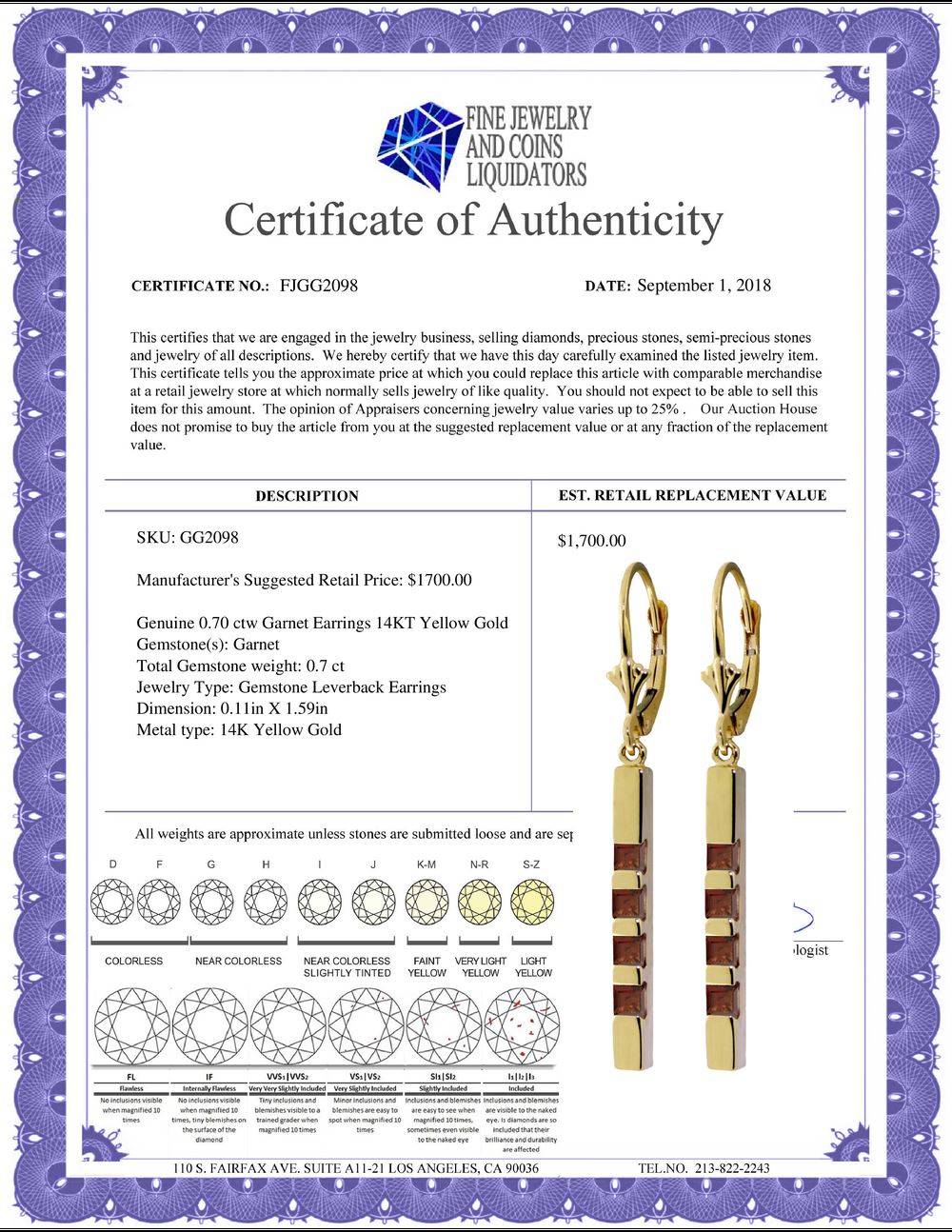 Genuine 14K Yellow Gold 0.7 ctw Garnet Earrings