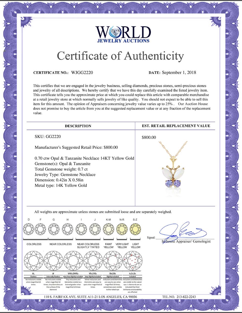 Genuine 14K Yellow Gold 0.7 ctw Opal & Tanzanite Necklace