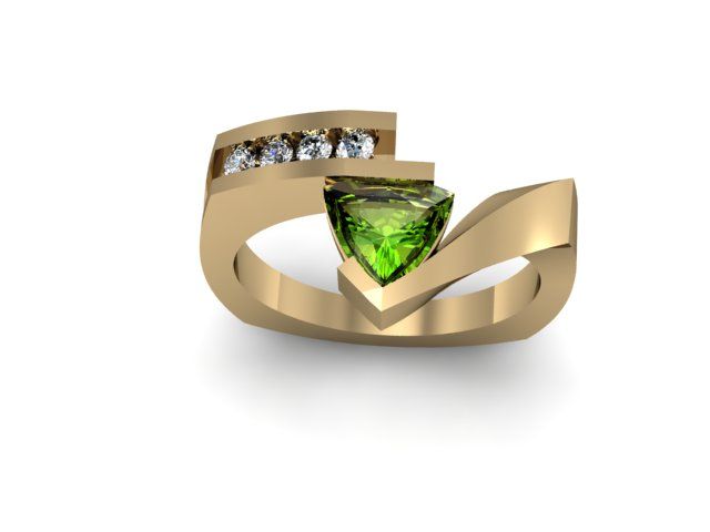 Genuine 0.72 ctw Peridot Trillion Diamond Ring 14k **|**|** Mainstone: Periodt ; Metal Purity: 14kt ; Metal: White or Yellow Gold ; Weight(g): 6.584 ; Total CTW: 0.72 ; Diamond Count 1: 5 ROUND CUT ; Diamond CTW 1: 0.22 ; Clarity: SI-I ; Color: G-H; Gem Ciount 1: 1 TRILLION CUT ; Gem Weight 1/Carat: 0 ; MSRP: $2079