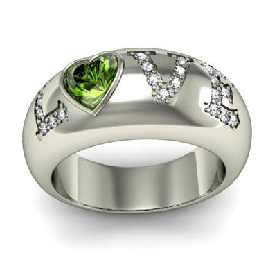 Mainstone: Peridot ; Metal Purity: 14kt ; Total CTW: 0.74 ; Metal: White or Yellow Gold ; Weight(g): 9 ; Diamond Count 1: 22 ROUNDCUT ; Diamond CTW 1: 0.14 ; Diamond Clarity: SI1-SI-I ; Diamond Color: G-H ; Gem Count 1: 1 HEARTSHAPECUT ; Gem ; MSRP: $2369