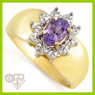 Gemstone: Tanzanite ; Diamond Count: 2 RD; Diamond Weight: 0.04; Clarity: SI1-SI2 H-J; Gemstone Clarity: AA - AAA : Color: Purple ; Gemstone Count & Color: 1 Oval Cut; Gemstone Weight: 0.72; Metal Purity: 14KT; Metal: Yellow-Gold ; Gold Weight (g) approx: 3.36; Ring Size 6.5; Dimension: Approx. 3/8" x 7/16
