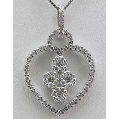 Genuine 0.80 ctw Round Diamond Heart Pendant 14k **|**|** Total CTW: 0.8 ; Jewelry Type: Pendant83 round cut ; Weight(g): 1.77 ; Metal Purity: 14k White Gold ; MSRP: $3160