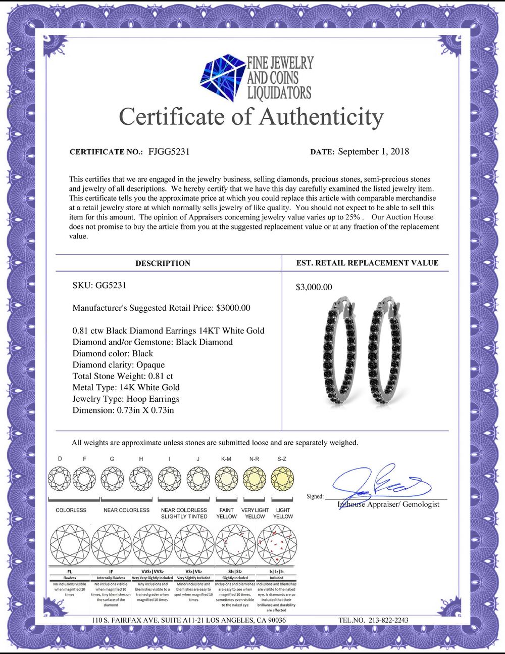 REF-97P2H - SKU: GG5231 ---- Genuine 0.81 ctw Black Diamond Earrings 14KT Rose Gold