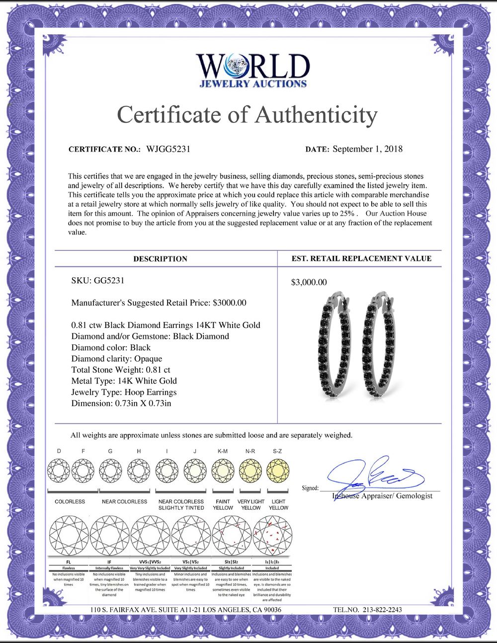 All property is sold “AS IS”, and ALL SALES ARE FINAL. Property is open to thorough public inspection. It is the Bidder’s responsibility to determine condition, age, genuineness, value or any other determinative factor. WJA may attempt to describe the merchandise in advertising and on the Internet but makes no representations. In no event shall WORLD JEWELRY AUCTION be held responsible for having made or implied any warranty of merchantability or fitness for a particular purpose. Bidder shall be the sole judge of value.