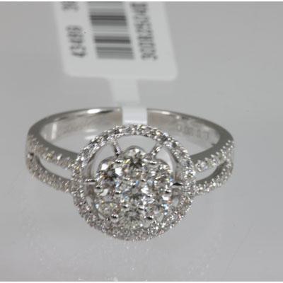 Main Stone: Diamond ; Type: Ring ; Diamond Count 1: 1RD ; Diamond Weight 1: 0.08 ; Diamond Count 2: 71RD ; Diamond Weight 2: 0.73 ; Metal Purity: 18KT ; Metal: White Gold ; Diamond Clarity: SI1-SI2 ; Diamond Color: G-H ; Weight(g): 3.22g ; Ring Size: 6.5