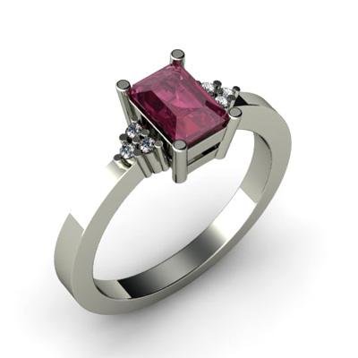 Mainstone: Ruby ; Metal Purity: 10kt ; Metal: White or Yellow Gold ; Weight(g): 4.04 ; Total CTW: 0.81 ; Diamond Count 1: 6 ROUNDCUT ; Diamond CTW: 0.06 ; Diamond Clarity: SI1-SI2 ; Diamond Color: G-H ; Gemstone Count: 1 EMERALD CUT ; Gem Weight 1/Carat: 0.75 ; Gemstone Color: ; Clarity / Rating: AA-AAA ; Gem Size: approx. 6x4mm ; MSRP: $1657