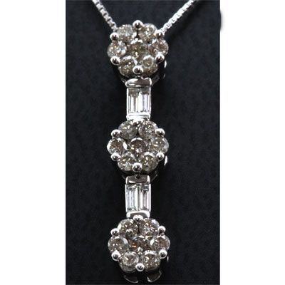 Genuine 0.81ctw Round and Bagette Diamond Necklace 14k **|**|** Total CTW: 0.81ctw ; Diamond Count: 21RD, 2BG ; Weight(g): 2.04g ; Metal Purity: 14k White Gold ; MSRP: $2206