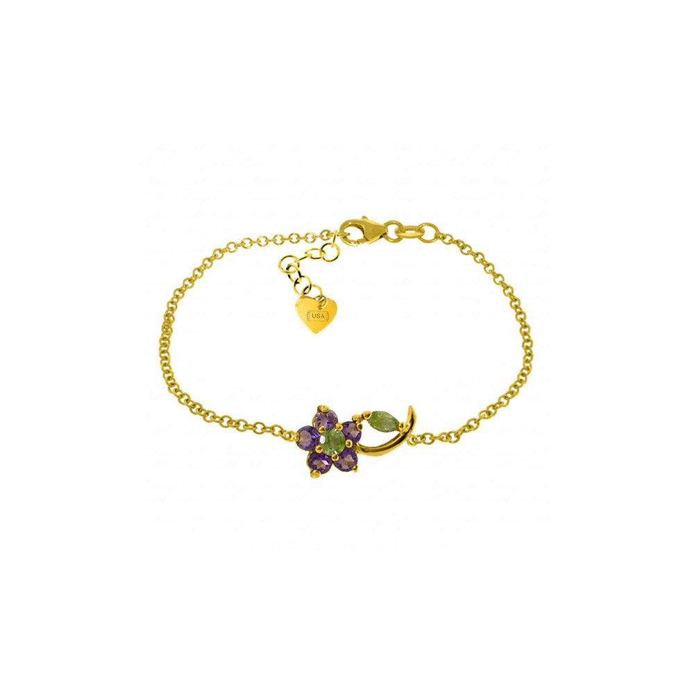 Genuine 14K Yellow Gold 0.87 ctw Peridot & Amethyst Bracelet