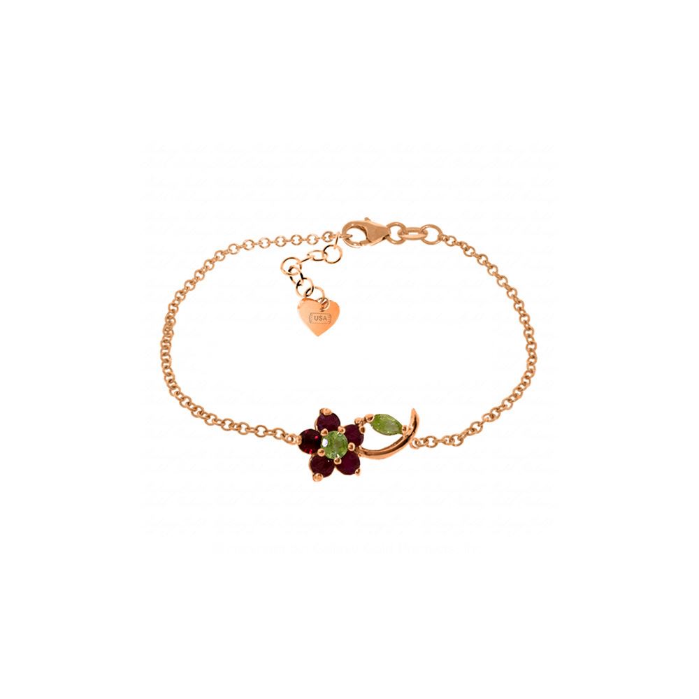 Genuine 14K Rose Gold 0.87 ctw Peridot & Ruby Bracelet