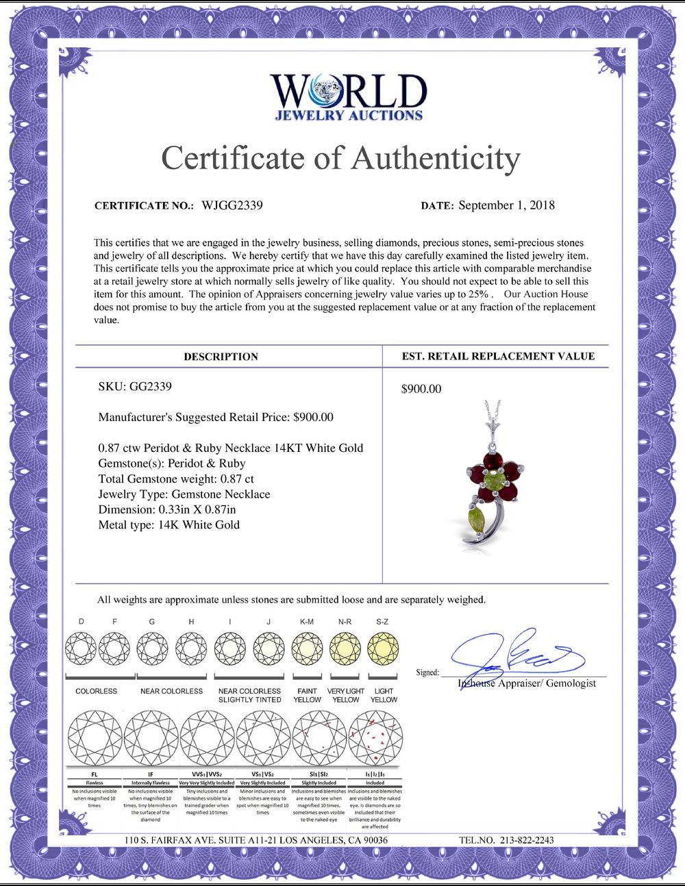 REF-26P9H - SKU: GG2339 ---- Genuine 0.87 ctw Peridot & Ruby Necklace 14KT White Gold