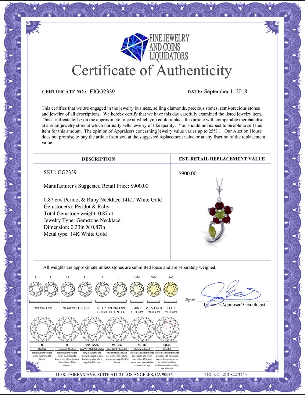 REF-26P9H - SKU: GG2339 ---- Genuine 0.87 ctw Peridot & Ruby Necklace 14KT White Gold