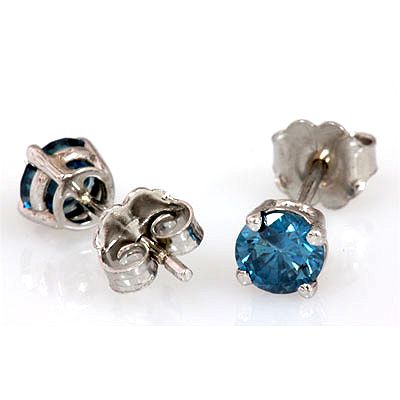 Genuine 0.90 ctw Blue Diamond Stud Earring 14k **|**|** Mainstone: Blue Diamond Stud Earring ; Metal Purity: 14kt ; Metal: W/Y Gold ; Weight(g): 1.12 ; Total CTW: 0.9 ; Diamond Count 1: 2 ROUND CUT ; Diamond CTW 1: 0.9 ; Clarity: SI-I ; Color: Blue - Enhanced ; MSRP: $2934
