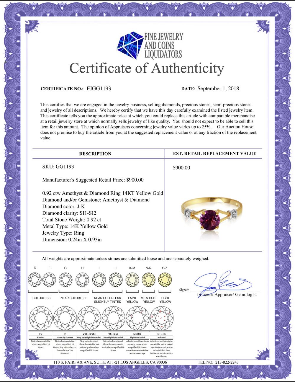 REF-28P4H - SKU: GG1193 ---- Genuine 0.92 ctw Amethyst & Diamond Ring 14KT Rose Gold