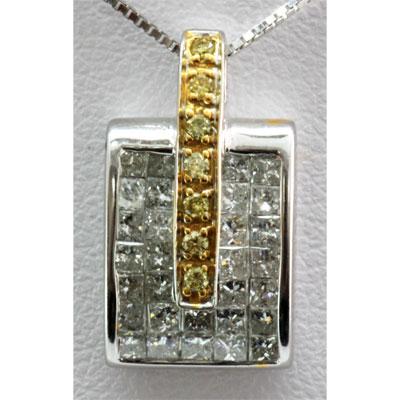 Total CTW: 0.92 ; Style: Pendant ; Diamond Count 1: 30 square, 7 round ; Weight(g): 3.44 ; Metal Purity: 14k Yellow-White Gold ; MSRP: $2836