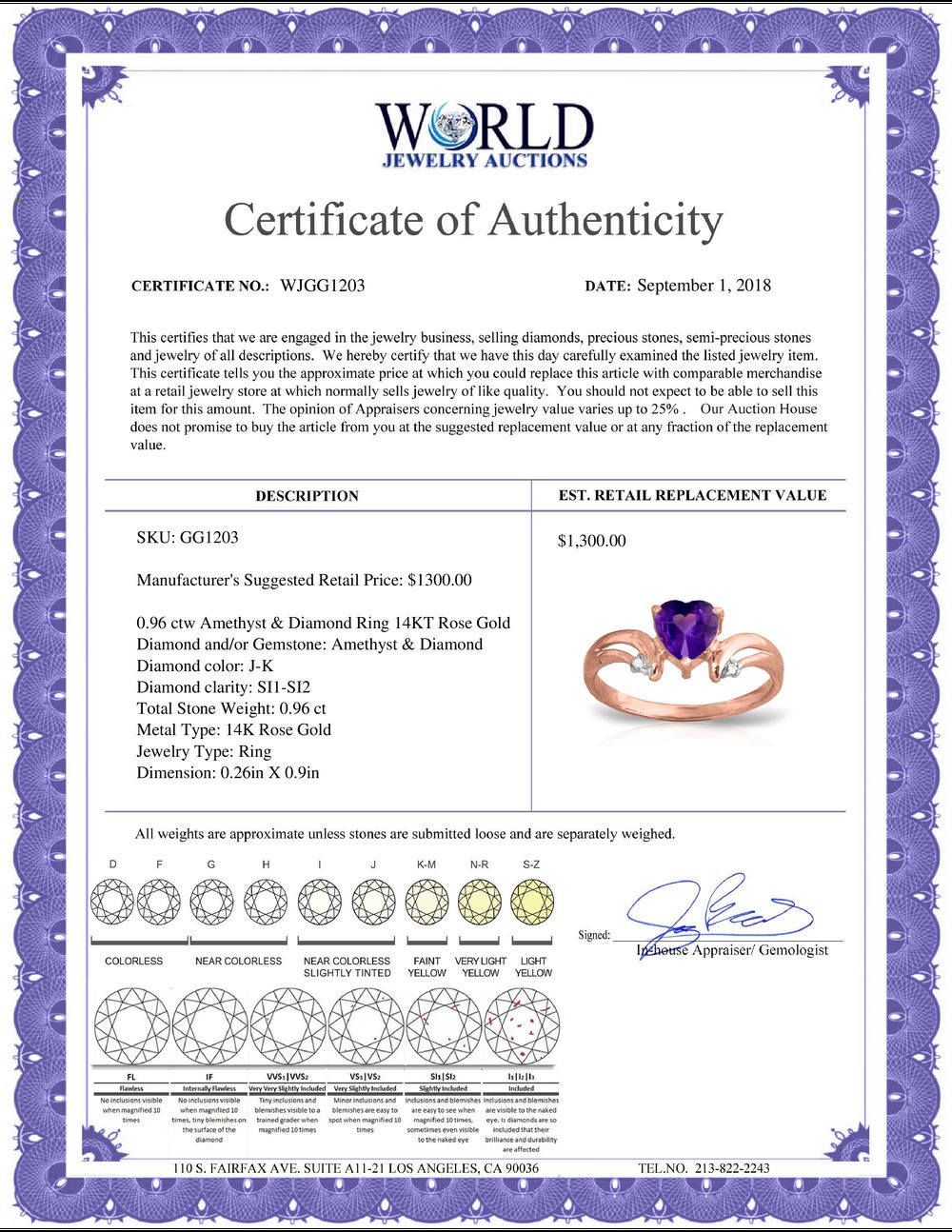 REF-41M4T - SKU: GG1203 ---- Genuine 0.96 ctw Amethyst & Diamond Ring 14KT Rose Gold