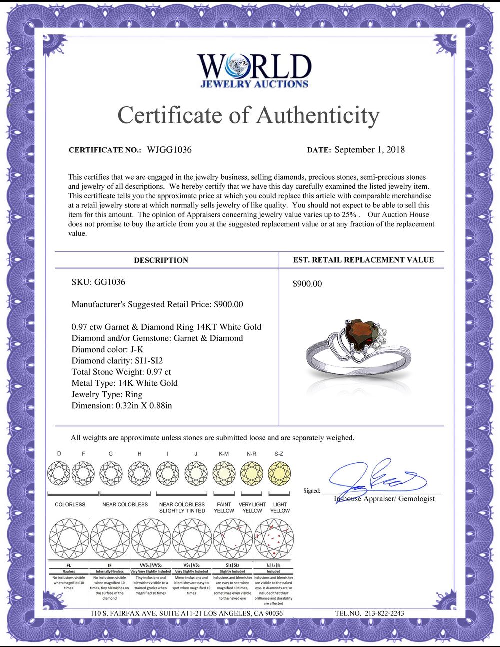 WORLD JEWELRY AUCTION believes to the best of its knowledge that the information presented in any listing has come from reliable sources. Such information is presented solely for the convenience of the Purchaser. WJA makes no warranties of any kind related to the information presented in any listing. WJA further makes no warranties, either express or implied, relating to the value, marketability or condition of the lot described in any listing. Prospective bidders should investigate a lot thoroughly before bidding. By bidding the Bidder acknowledges that Bidder has investigated the lot to his or her satisfaction, or, that Bidder has chosen not to do so, and agrees to accept the lot being bid on with no objections after the sale closes. If you are uncertain please contact us with your questions prior to bidding. If you are still uncertain after we reply, please refrain from bidding. Photos other graphic material contained in any listing of generic or duplicate lots may be stock presentations and not necessarily of the specific lot.