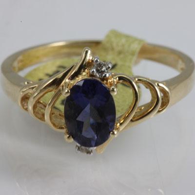 Main Stone: Iolite ; Carat Weight: 0.97ctw ; Gold Carat:14KT; Metal: Yellow Gold ; Ring Size: 7 ; Diamond Weight: 0.3 ; Gemstone Carat Weight: 0.67; Cut: OVAL