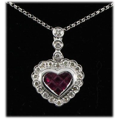 Genuine 0.98 ctw Ruby & Diamond Necklace 14kt W/G 4.45g **|**|** Mainstone: Ruby; Total CTW: 0.98 ; Gem QTY: 8 ; Gem CTW: 0.65 ; Dia/CTW: 0.33 ; Diamond Count: 21 ; Diamond Shape: Round ; Grams/Total: 4.45 ; Metal/Purity: 14kt W/G ; MSRP: $1000