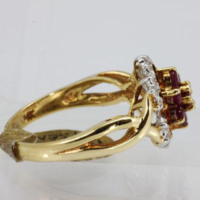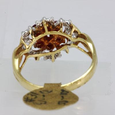 Gemstone: Ruby ; Gemstone Weight: 0.85 ; Diamond Count: 18RD ; Diamond Weight: 0.13; Metal Purity: 14KT ; Metal: Yellow Gold ; Ring Size: 6.5