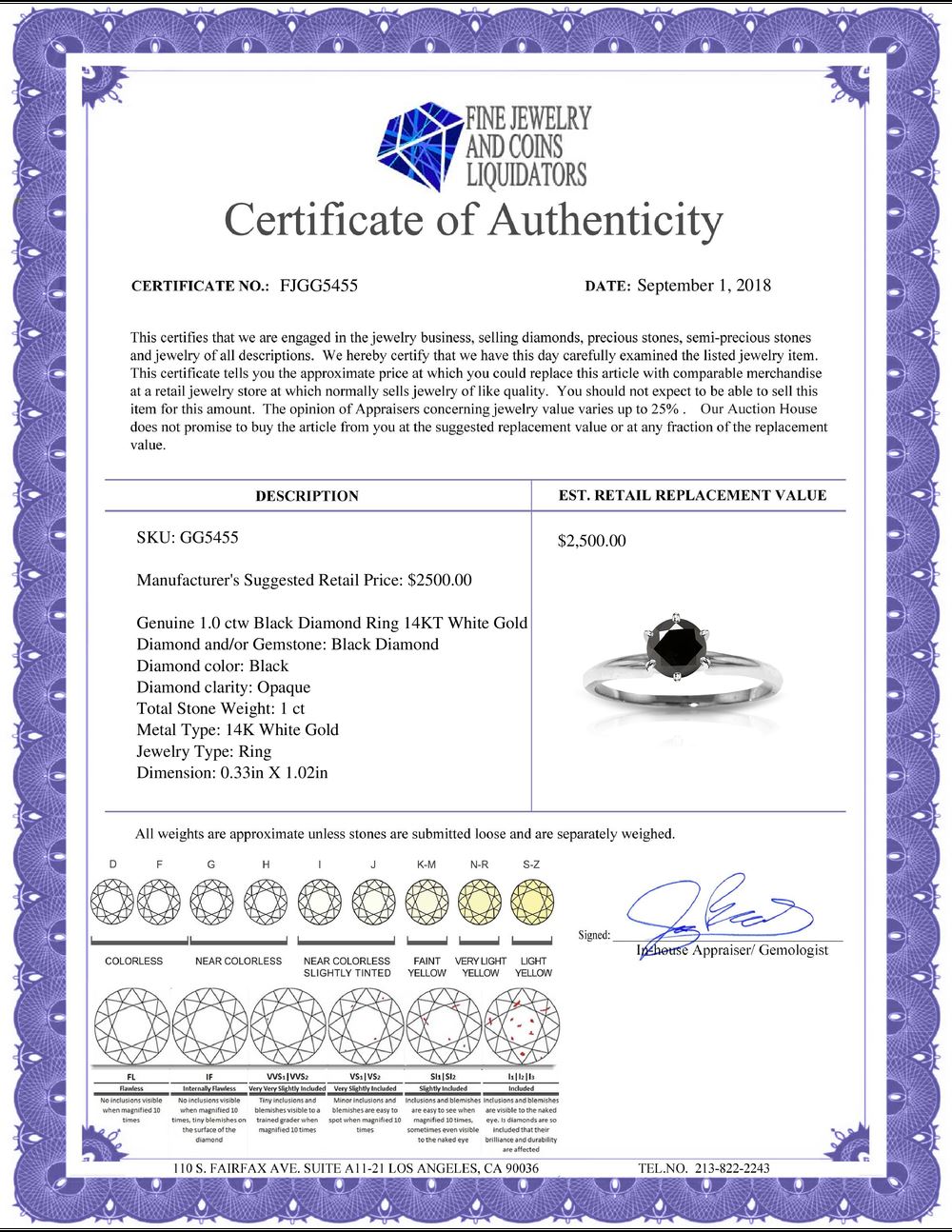 REF-81A2K - SKU: GG5455 ---- Genuine 1.0 ctw Black Diamond Ring 14KT White Gold