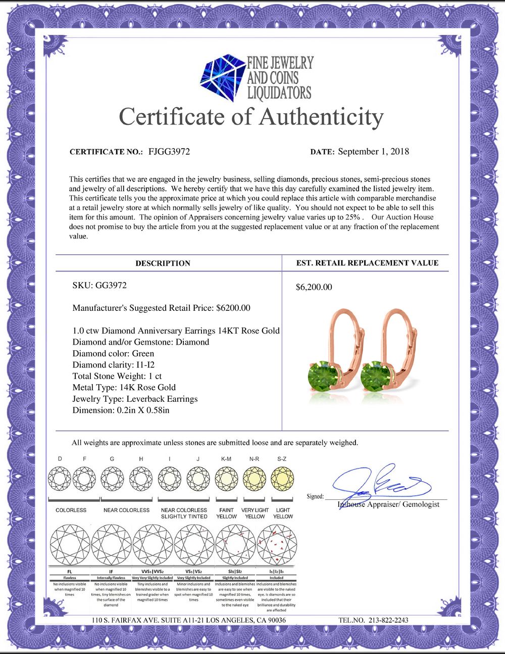 REF-204K6V - SKU: GG3972 ---- Genuine 1.0 ctw Diamond Anniversary Earrings 14KT Yellow Gold