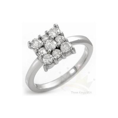 Gemstone: Diamond ; Diamond Count: 9 RD; Diamond Weight: 1; Clarity: SI1-SI2 H-J; Metal Purity: 14K; Metal: White-Gold; Gold Weight (g) approx: 6; Ring Size 6.5; Dimension: Approx. Top Dimension: 8mm x 8mm