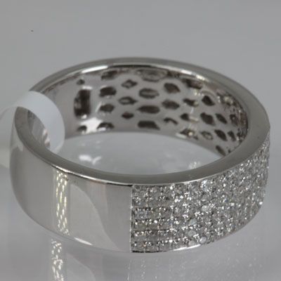 Genuine 1.00 ctw Diamond Ring 18KT White Gold **|**|** Gold Weight(g): 8.55; Diamond Count: 162RD ; Diamond Weight: 1.00 ; Diamond Count 2: N/A ; Diamond Weight 2: N/A ; Gemstone Cut & Weight: N/A ; Gemstone Count 1: N/A ; Gemstone Weight 1: N/A ; Gemstone: N/A ; Total Weight: 1.00 ; Carat: 18KT ; Metal: Whit; Availability: 3-10 Business days, ready to ship, with certification of appraisal will take 2 weeks. ; MSRP: $7250