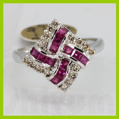 Gemstone: Ruby ; Gemstone Weight: 0.764 ; Diamond Count: 12RD ; Diamond Weight: 0.24; Metal Purity: 14KT ; Metal: White Gold ; Ring Size: 6.5