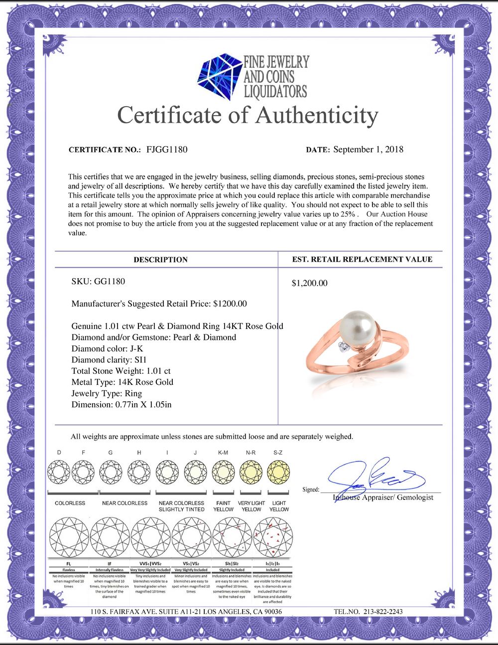 REF-38P2H - SKU: GG1180 ---- Genuine 1.01 ctw Pearl & Diamond Ring 14KT Rose Gold