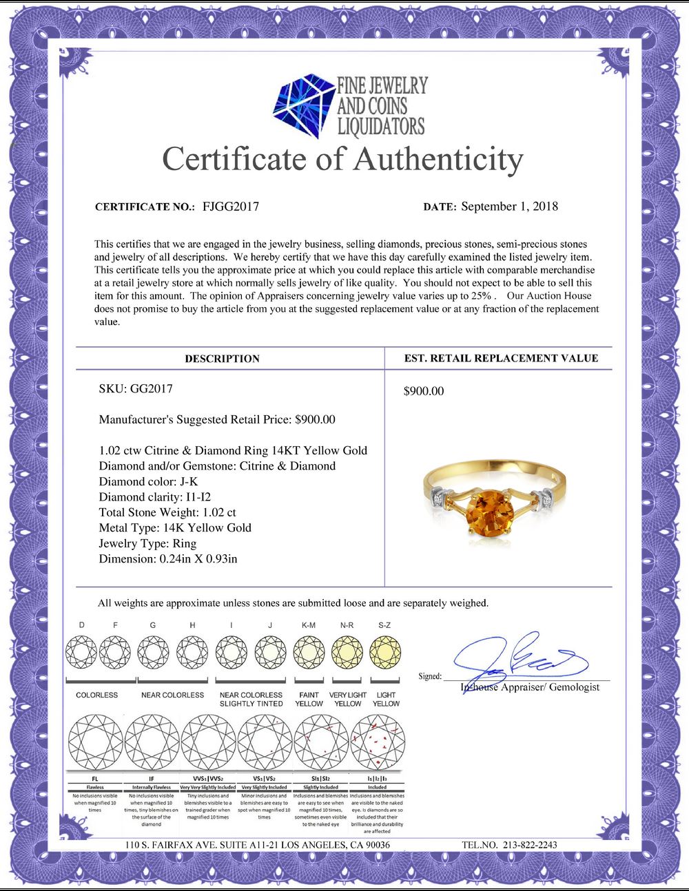 All Gia and EGL Diamonds are subject to availability due to consignors’ terms with us.