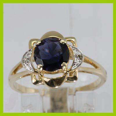 Main Stone: Iolite ; Diamond CTW: 0.02 ; Gemsonte CTW: 1 : Main Stone Treatment: Not Enhanced ; Exact Total Weight: 1.02 ; Metal: Yellow Gold ; Ring Size: 7 ; Main Stone Color: Blue ; Metal Purity: 14K (Soild, Unplated) ; Condition: New