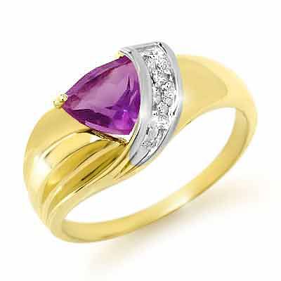 Genuine 1.02ctw Amethyst & Diamond Ring Yellow Gold * MSRP $610 ---- Diamond: 1 Round cut @ 0.02 ctw---- Clarity: SI-I---- Color: H-K----Gemstone: Natural Amethyst----Gemstone color: Purple----Gemstone quality: Good-to-Very Good----Gemstone Cut & Weight: 1 Trillion cut @ 1.0 ctw----Metal Purity & Color : 10K Gold-Yellow----Gold weight: 3.10 grams----Ring size (US): 6----Dimension: Approx. 5/16 x 5/16--------Shipping: Within 15 business days