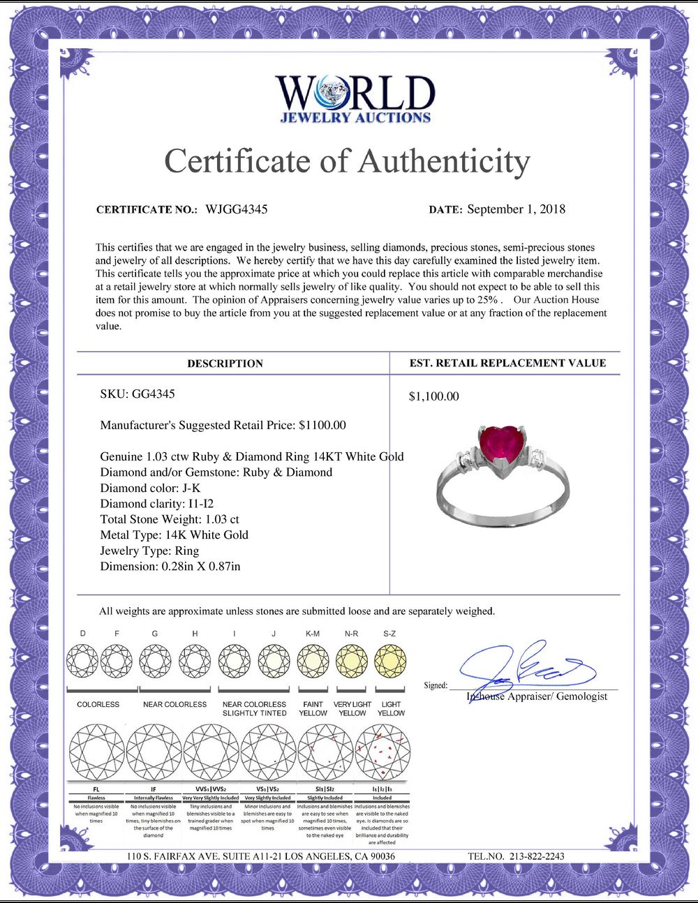 WORLD JEWELRY AUCTION believes to the best of its knowledge that the information presented in any listing has come from reliable sources. Such information is presented solely for the convenience of the Purchaser. WJA makes no warranties of any kind related to the information presented in any listing. WJA further makes no warranties, either express or implied, relating to the value, marketability or condition of the lot described in any listing. Prospective bidders should investigate a lot thoroughly before bidding. By bidding the Bidder acknowledges that Bidder has investigated the lot to his or her satisfaction, or, that Bidder has chosen not to do so, and agrees to accept the lot being bid on with no objections after the sale closes. If you are uncertain please contact us with your questions prior to bidding. If you are still uncertain after we reply, please refrain from bidding. Photos other graphic material contained in any listing of generic or duplicate lots may be stock presentations and not necessarily of the specific lot.