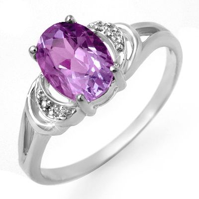Genuine 1.05ctw Amethyst & Diamond Ring White Gold * MSRP $460 ---- Diamond: 4 Round cut @ 0.05 ctw---- Clarity: SI-I---- Color: H-K----Gemstone: Natural Amethyst----Gemstone color: Purple----Gemstone quality: Good-to-Very Good----Gemstone Cut & Weight: 1 Oval cut @ 1.0 ctw----Metal Purity & Color : 10K Gold-White----Gold weight: 1.60 grams----Ring size (US): 6----Dimension: Approx. 5/16 x 3/8-----------Shipping: Within 15 business days