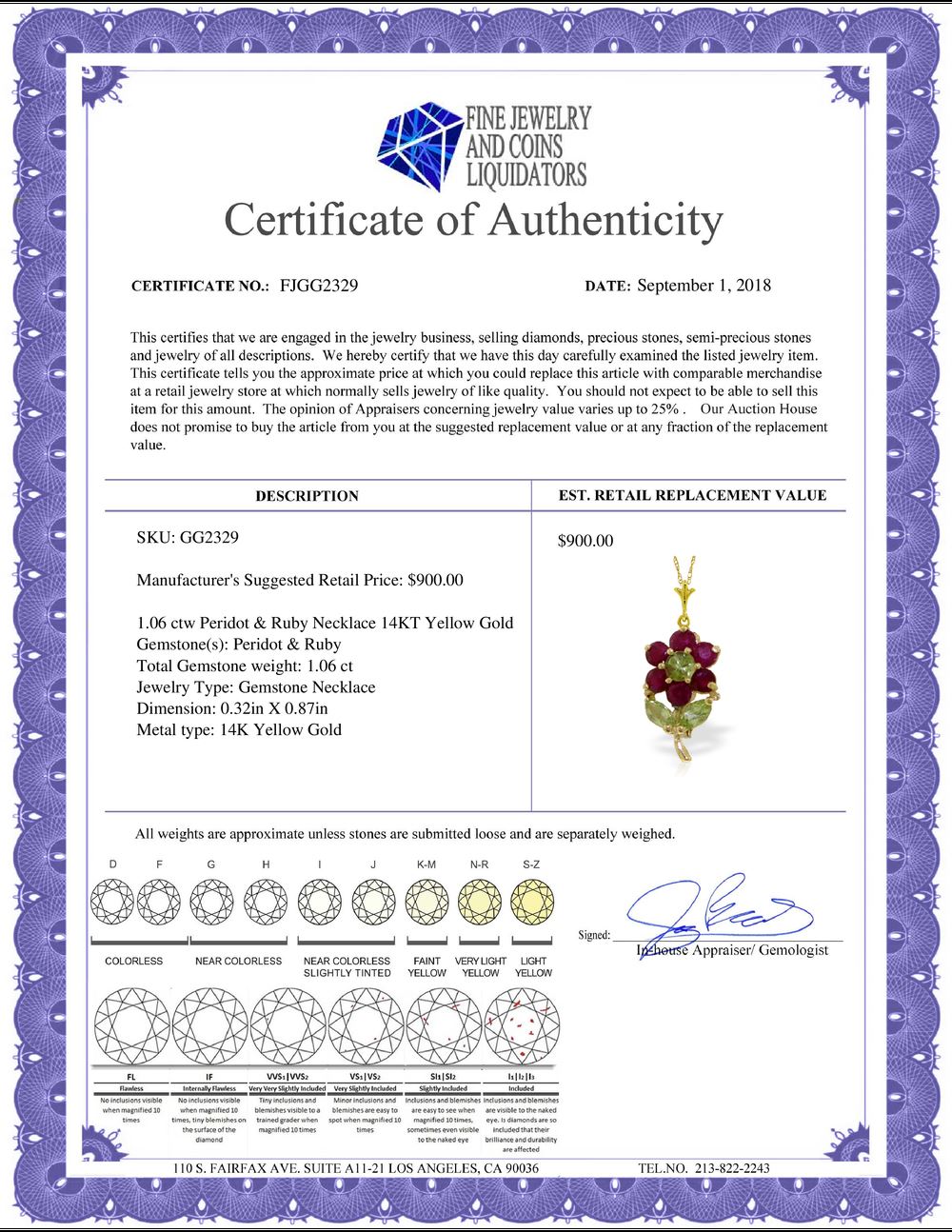 REF-26P9H - SKU: GG2329 ---- Genuine 1.06 ctw Peridot & Ruby Necklace 14KT Yellow Gold